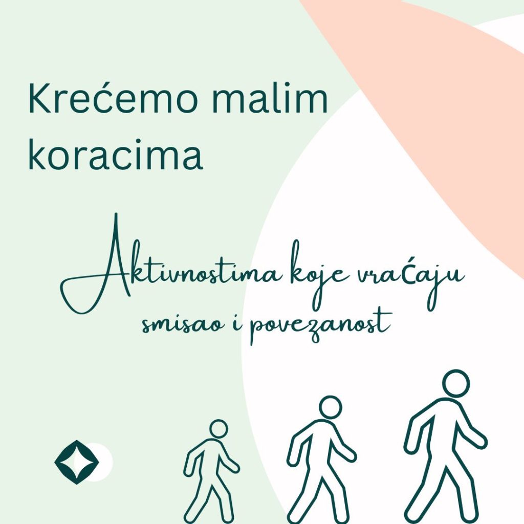 U tu svrhu u terapisjkom procesu u KBT-u koristimo bihejvioralnu aktivaciju – koja podrazumjeva planiranje malih, dostižnih aktivnosti koje vraćaju osjećaj kontrole, povezanosti i smisla.